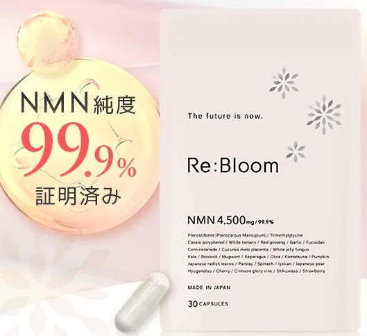 Re:Bloom(リブルーム)は、国産・高純度NMNのほか、美容健康に役立つ成分を配合したNMNサプリです。