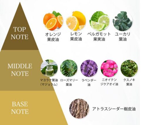 時間とともに変化する、柑橘系・フローラルハーブの優しい香りに仕上げており、リラクゼーション効果も得られます。