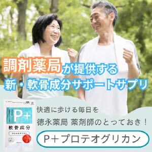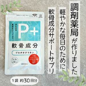 徳永薬局(株)が販売する「P+プロテオグリカン」は、軟骨成分のプロテオグリカンを配合したサプリメントです。